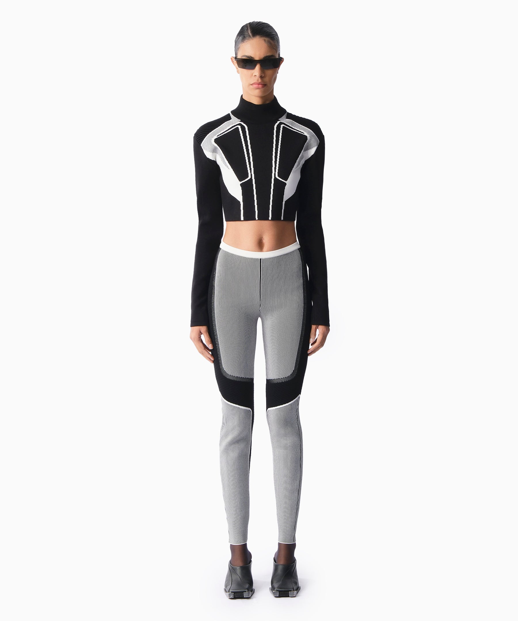 KNTLGY High Neck Stripped Bodysuit